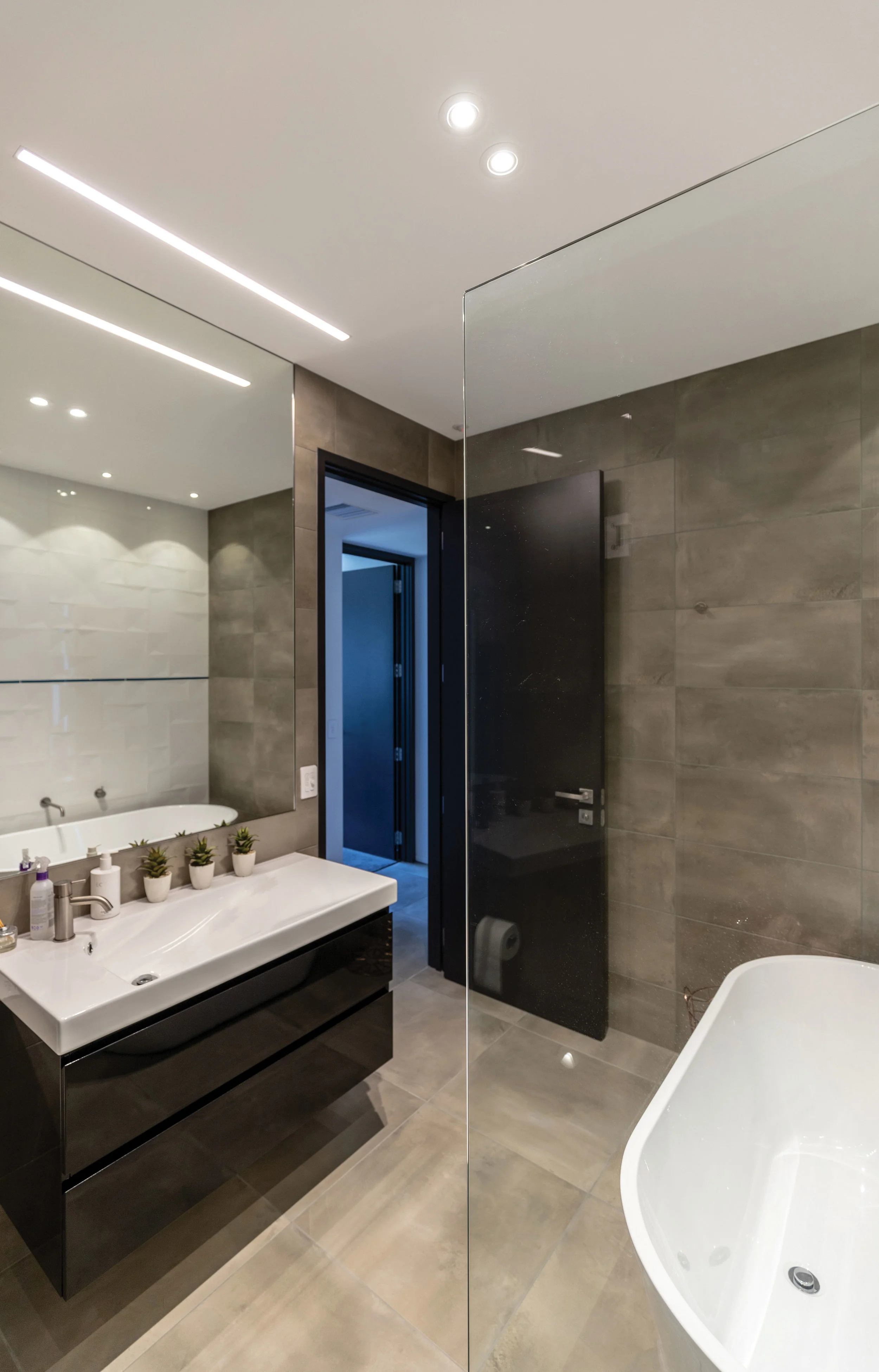 Modernage Kitchens and Joinery, that have a longstanding relationship with Parsons Construction, manufactured and installed the kitchen and all the joinery throughout the home, working closely with their own in-house designer, the kitchen designer, architect, and interior designer to realise the vision for the spaces. The brief for high-quality joinery included an automated pop-up cabinet for the television that retracts when the TV is not in use (to maximise the views), as well as extensive cabinetry and wardrobes in the bedrooms and upstairs powder room.