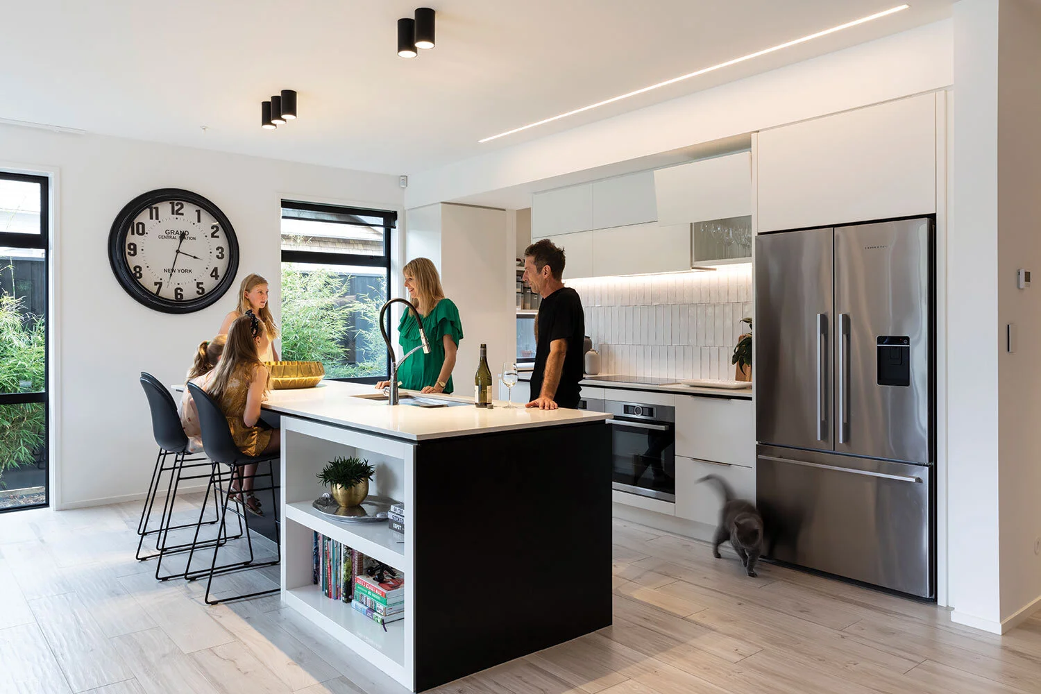 James had always liked the idea of designing a home for his family. With over 30 years of experience working in the architectural design industry in New Zealand and the UK, he had a long wish list of products and finishes to incorporate into the home. “We wanted an efficient, warm family home with hydronic underfloor heating. After spending some long winters in a cold house, heating was at the top of the list,” says James. Underfloor hydronic heating is an increasingly popular form of central heating as it can be installed without radiators and runs on a heat pump system.