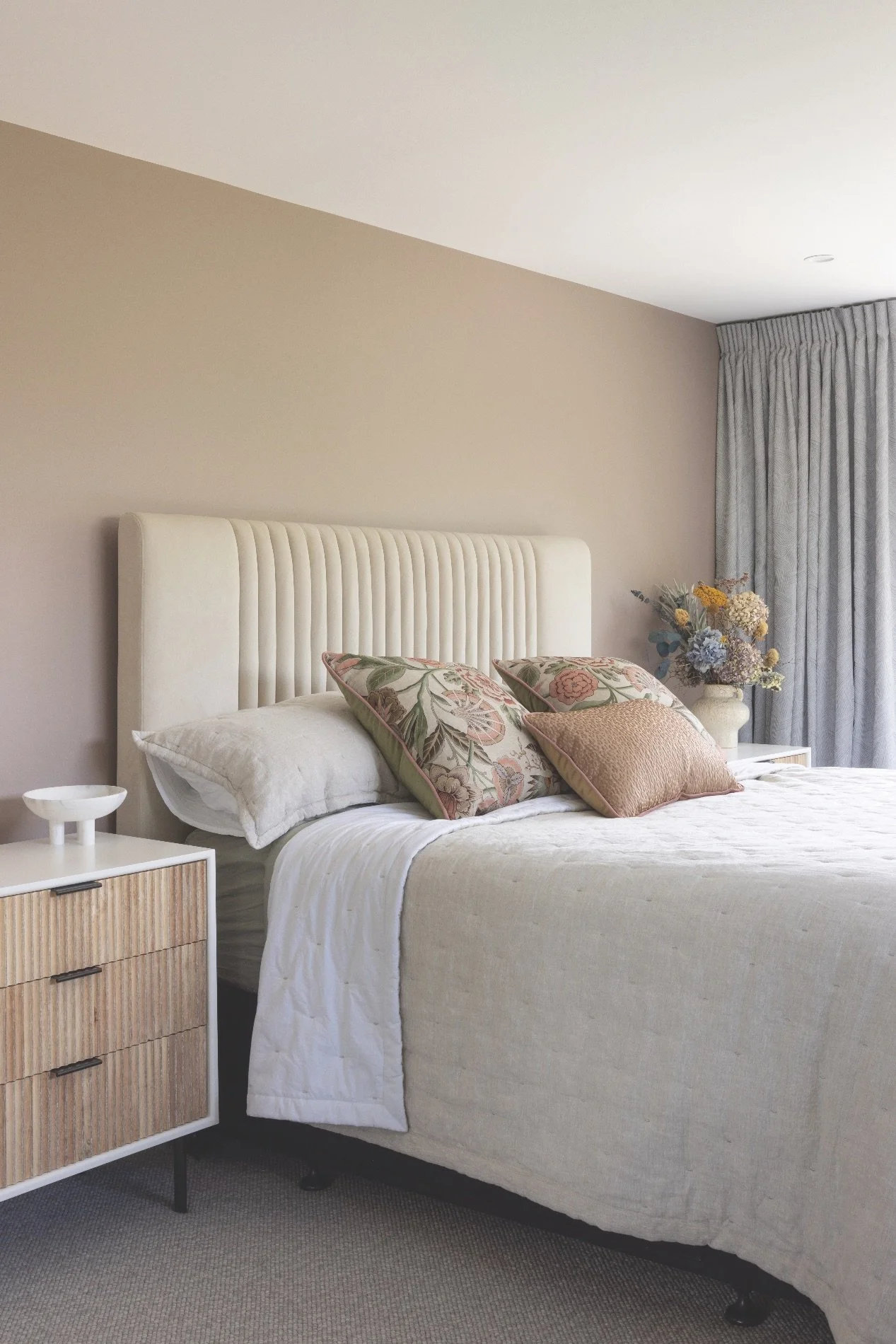Handmade mirrors by Joska Studio bring artisanal quality to the ensuite, while cushions in the master bedroom were created by Becky Lee of The Cushion Couturier on Rutland Street.