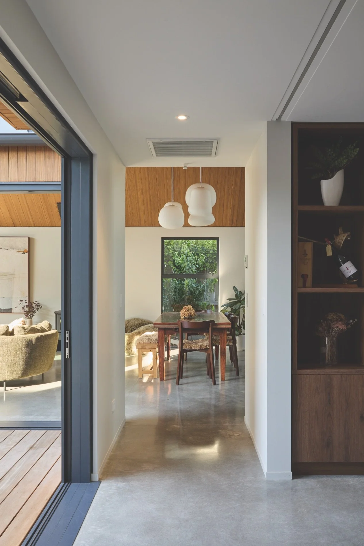 create that coveted indoor-outdoor flow. As Sam says, “The integration of the driveway and outdoor living areas allows them to function as one cohesive zone, maximising open space to the north.”