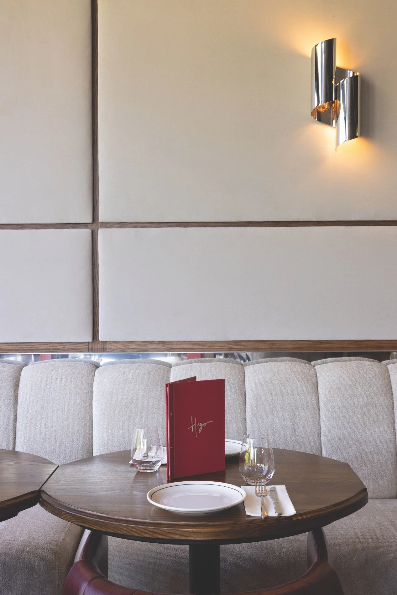 Drawing inspiration from European travels, Jen and David worked with Maelstrom Design to create bespoke pieces that echo Hugo’s French sensibility. The restaurant’s red leather dining chairs, inspired by the logo, are instantly distinctive. “We wanted something really unique to bring in a sense of French charm,” says Jen. “It’s wonderful seeing people notice and comment on the details.”