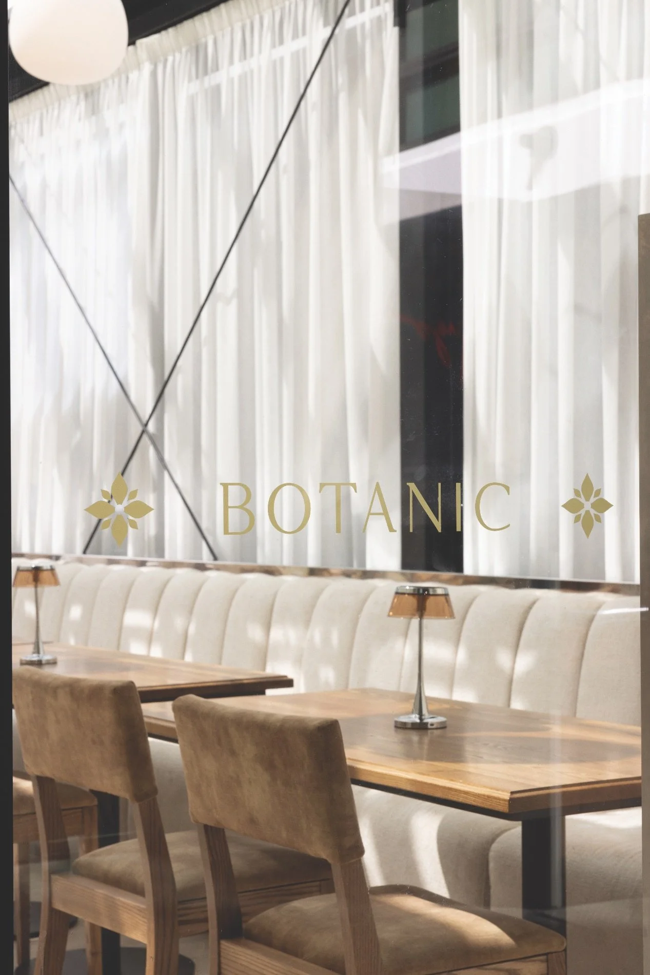 Montreux Furniture manufactured the velvet dining chairs that complement the dining space at Hugo, as well as the elegantly simple dining chairs for Botanic.