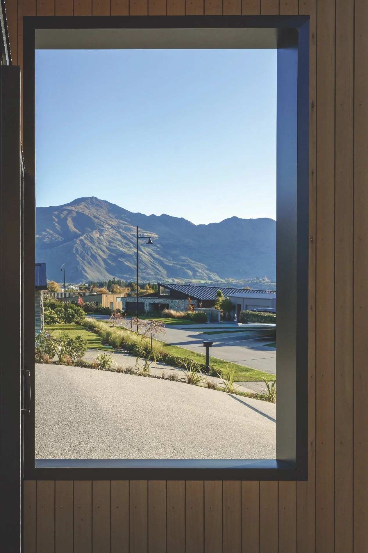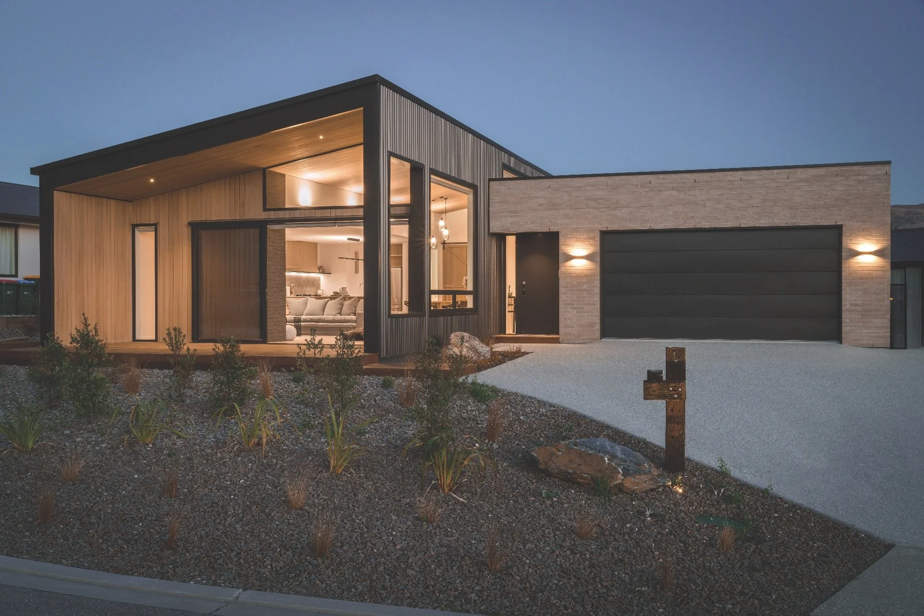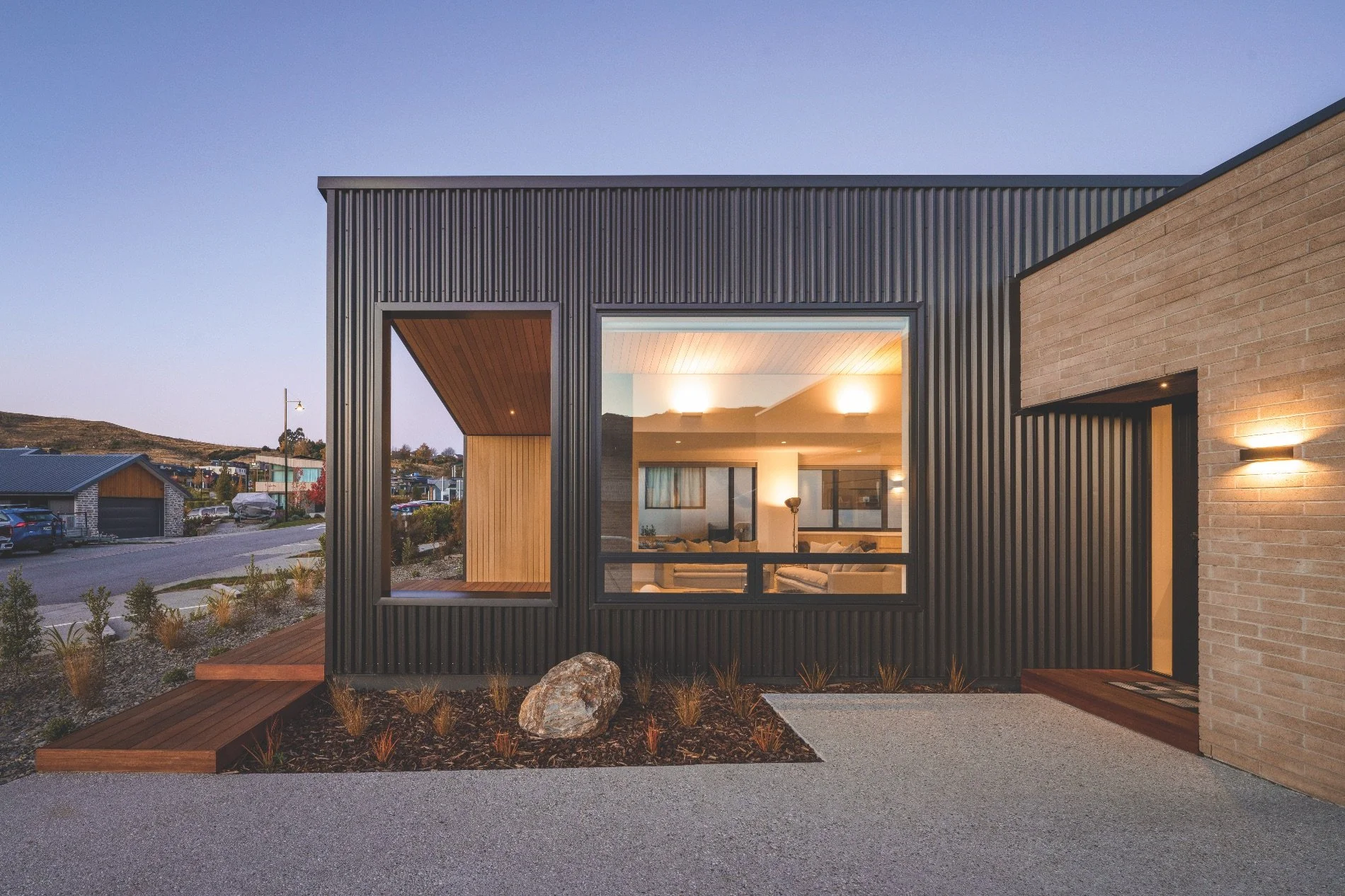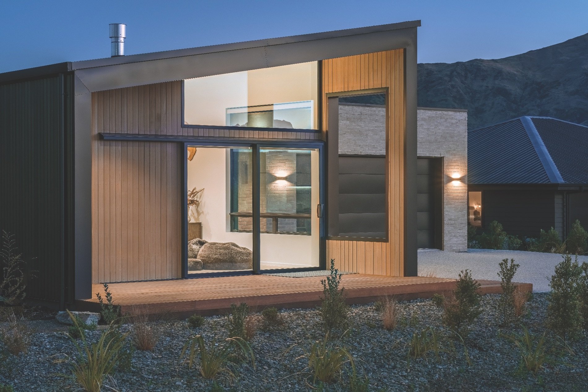 The brick cladding on this home is from Viblock and was chosen to fit into the Wānaka landscape – it is the 450 Half in Crawford Schist colour.