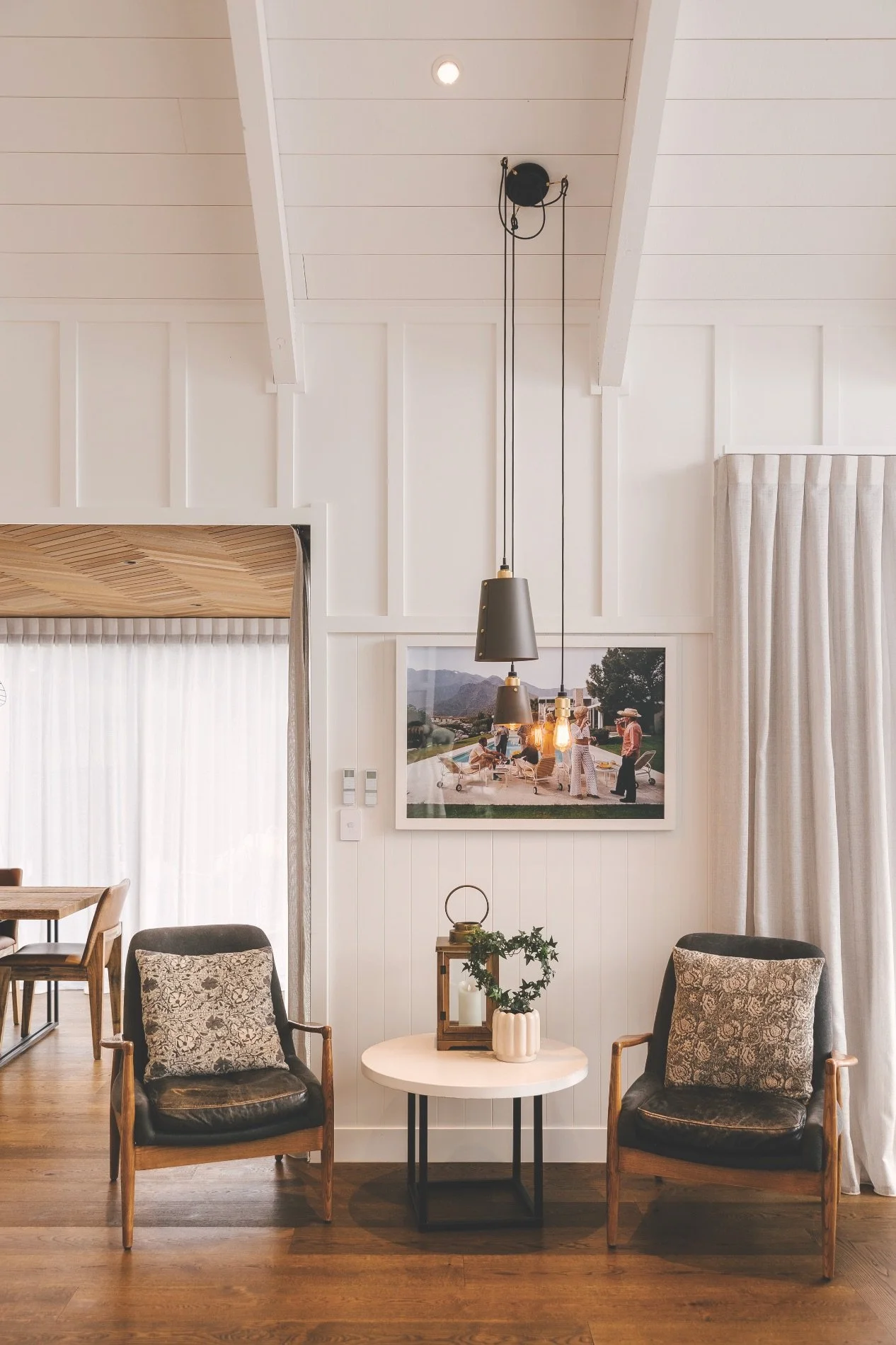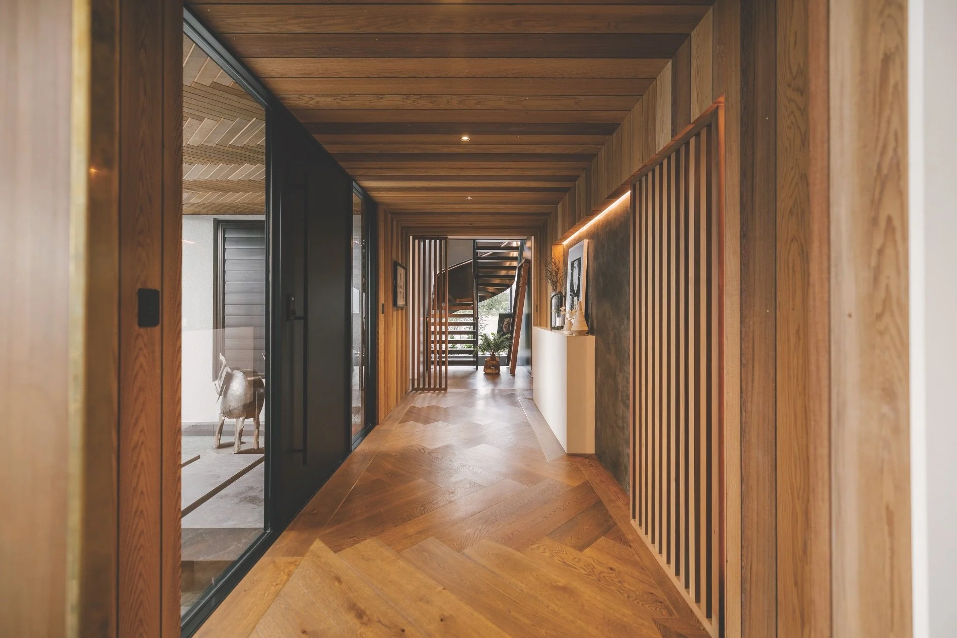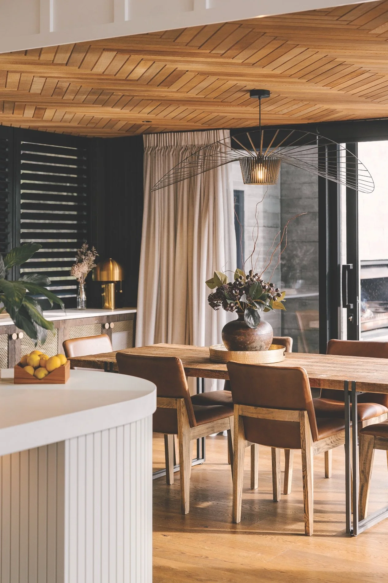 The house, built across two sections in a development, is a series of gabled forms with each offering opportunities for different identities. Ben wanted lots of timber, classic high-end carpentry, bespoke finishes and a mid-century feel.