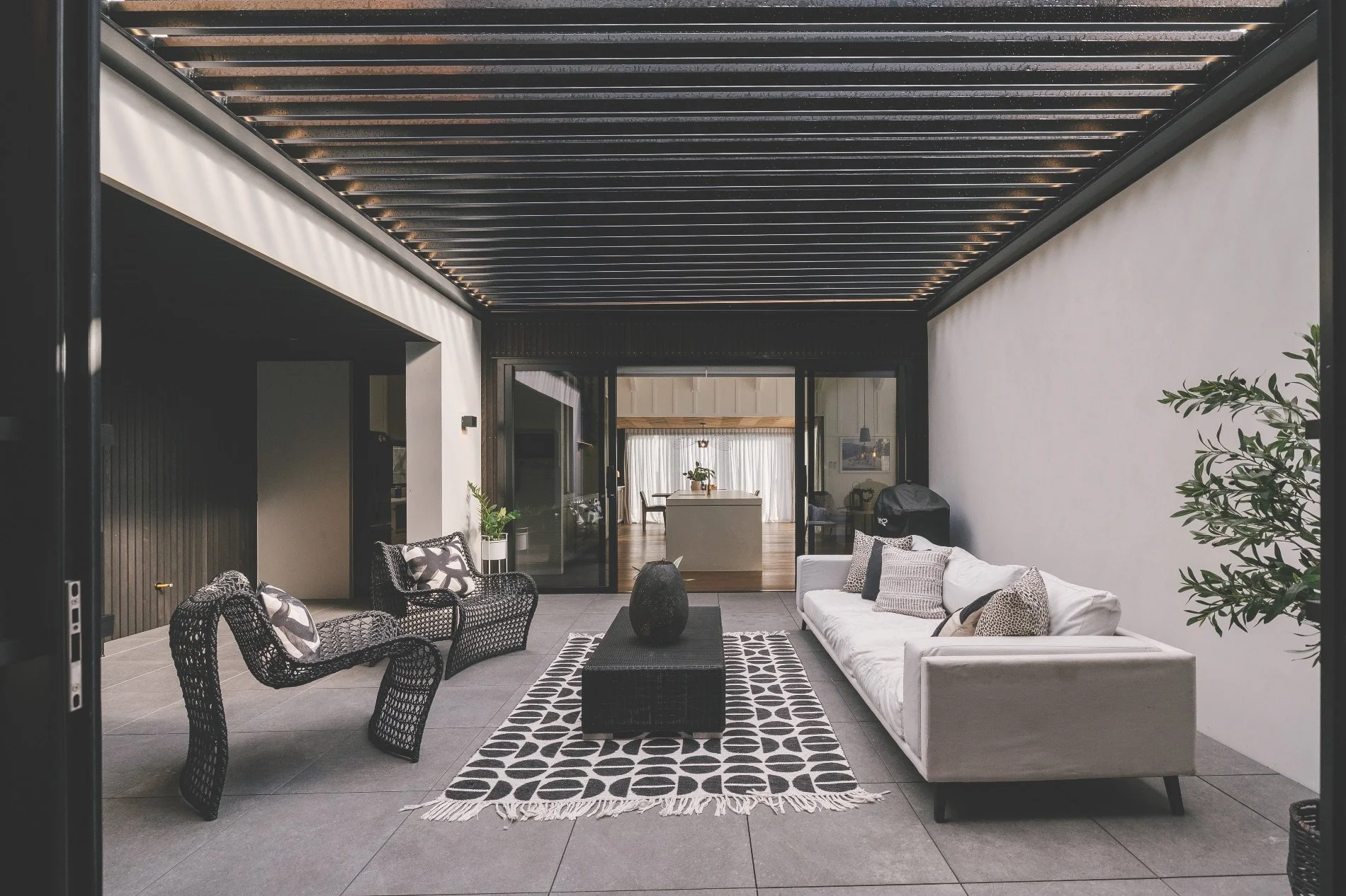 Ben founded Inhouse Construction about eight years ago, with a small team that brings bespoke, high-end residential builds to life. He and his wife Shinade were expecting baby number three (Poppy, joining older siblings Olivia and Archie) during this build, so the intention was to create a haven for the young family to grow up in.