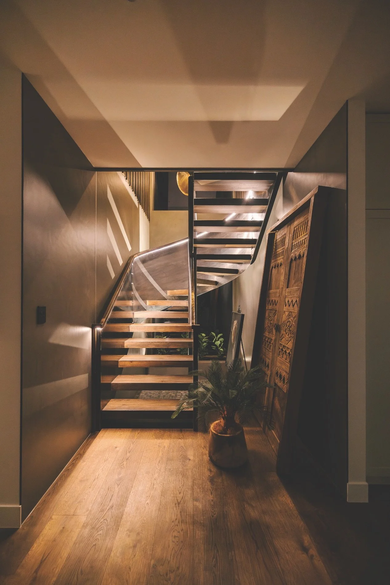 Even in a home full of extraordinary features, the innovative steel staircase is a standout. It was fully designed and built from concept to completion by AvantGarde Interiors.